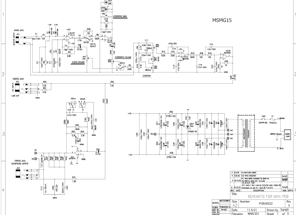 Tube Amplifiers Home -» Schematics -» Marshall Schematics -» msmg15 - could find only sheet 1 of 5 pls donate if find more:
